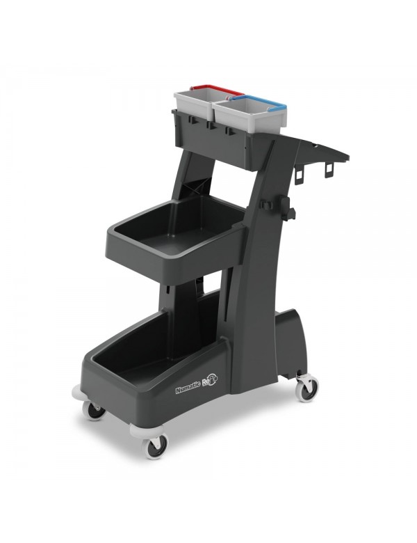 Profesjonalny wózek dwuwiaderkowy MM5 MultiMatic marki Numatic to multizadaniowy wózek serwisowy przeznaczony do mycia podłóg na niewielkich powierzchniach np. w sklepach, szkołach, biurach czy w gospodarstwach domowych. Wózek idealnie sprawdza się w utrzymaniu czystości na małych pomieszczeniach o ograniczonej dostępności np. w wąskich korytarzach, bądź między szafkami szkolnymi. Niewielki rozmiar oraz lekka konstrukcja odporna na uszkodzenia i rdzę to cechy charakterystyczne dla wózka MultiMatic.
