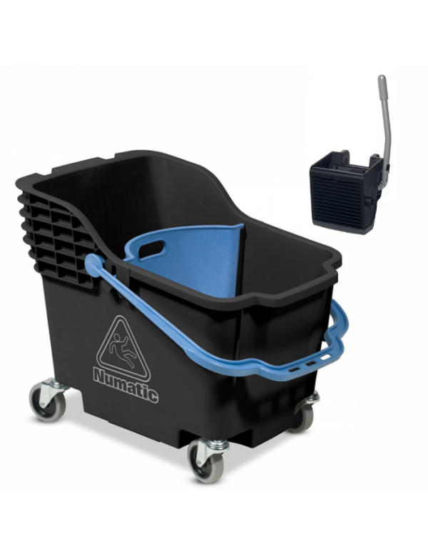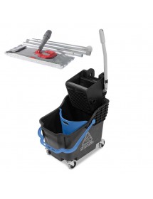 Po zamontowaniu przegrody uzyskujemy dwa zbiorniki 18 litrów i 12 litrów. Bardzo wytrzymała wyciskarka z dolnym odpływem umożliwia używanie różnych rodzajów mopów - sznurkowych, płaskich, w stylu Kentucky. Prosty, lekki i mobilny...