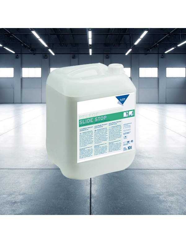 W celu zmniejszenia śliskości można zastosować Slide Stop jako środek konserwujący do wykładzin PCV, kamienia, zagruntowanego linoleum, nieglazurowanego klinkieru i płytki podłogowej.